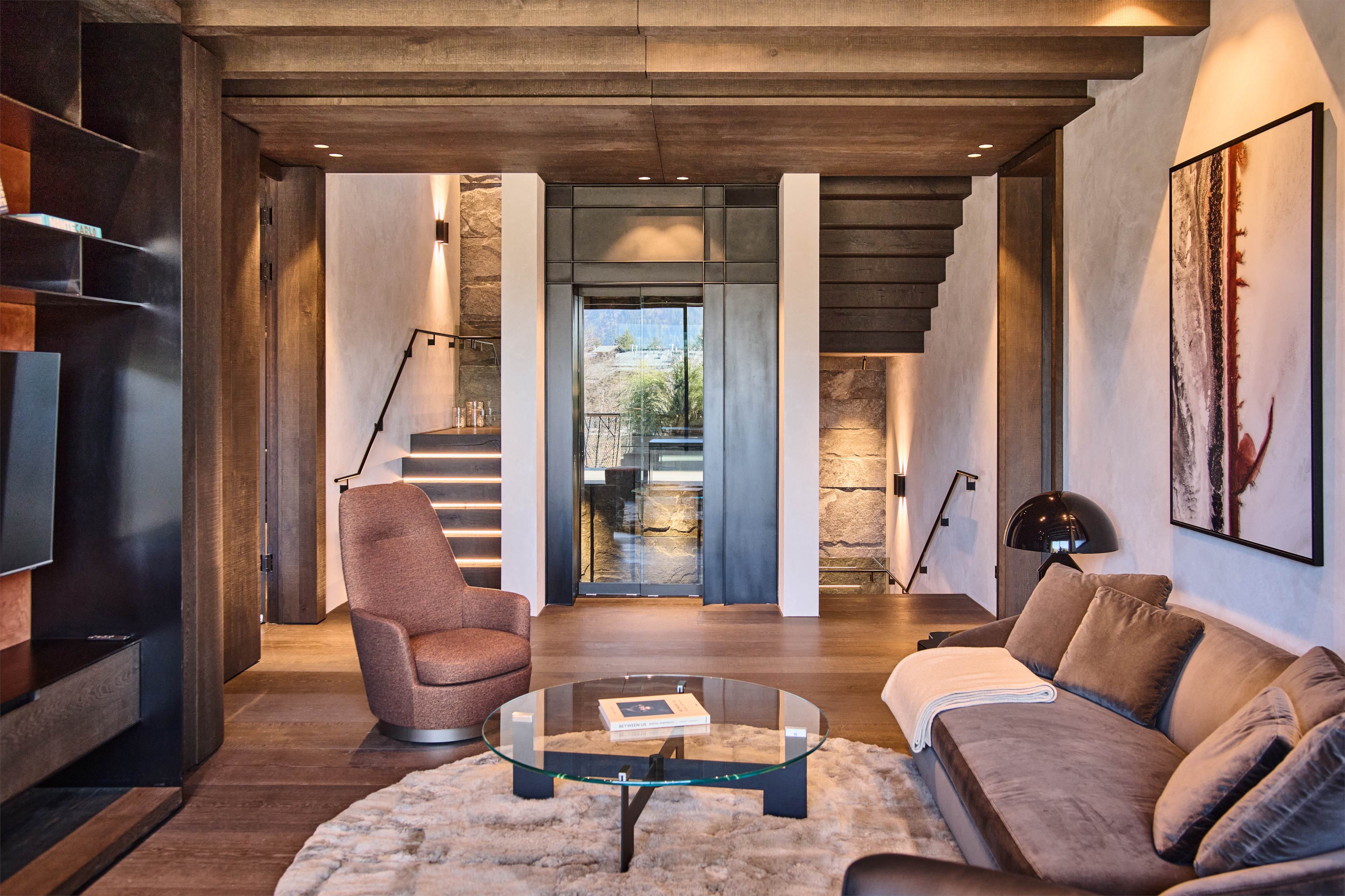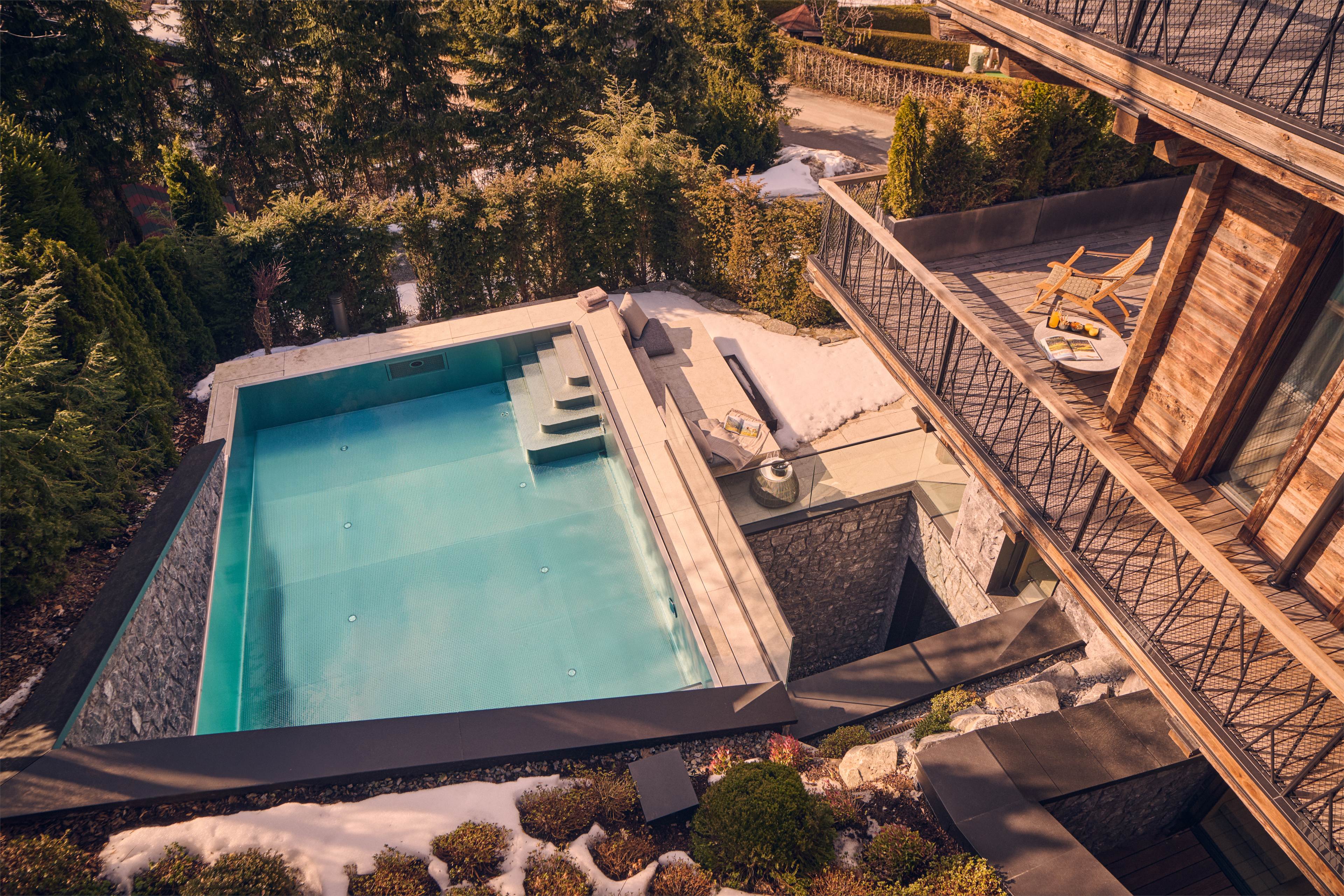 Nestled into the meadows surrounding Lake Schwarzsee, Chalet S discretely merges into the exclusive neighbourhood between the city of Kitzbühel and the romantic Lake Schwarzsee with its surrounding forests. From the exterior Chalet S appears like a contemporary interpretation of the classic Tyrolean chalet – the heavily sun-burned vintage wood on its upper storey facades harmonizes with the large-format natural stone facades on the pool and garage levels. The delicately knotted balcony railings remind of the crowns of the surrounding trees. The nearly perfect symmetry of the building from both, East and West mirrors the property’s straight-lined floorplan layouts.Chalet S features the finest construction materials applied by best-in-class carpenters. A unique mountain home in one of the most sought-after micro-locations of Kitzbühel.